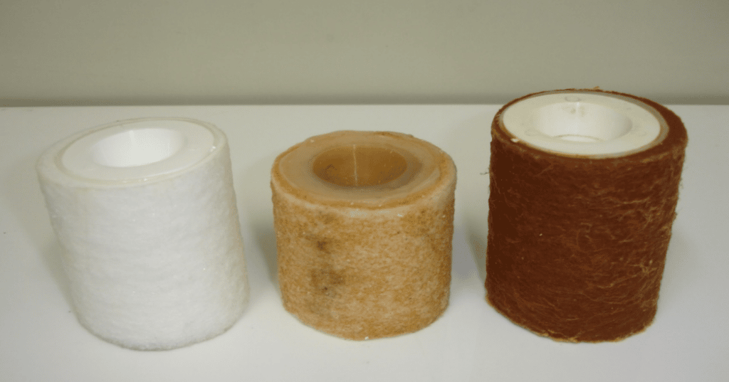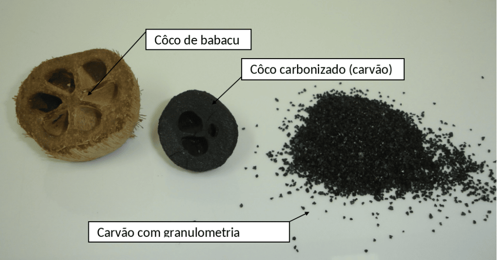 O carvão é capas de absorver e reter gases, outros líquidos e impressas presentes na água, tirando o gosto e odores estranhos além do seu papel principal retirar o cloro presente na água, o filtro também possui prata coloidal que inibe a proliferação de micro organismos, já que o filtro é um lugar húmido, e escuro propicio para a proliferação desses micro organismos. Logo abaixo temos duas imagens que ilustra o texto a primeira do carvão e a segunda da parte do filtro o polipropileno que retem as partículas solidas como barro que esta presente em nossa água.